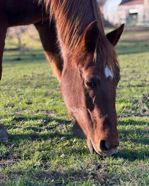 Roscoe, a 15-year-old gelding, was surrendered to us due to not being appropriate for his prior owner's riding program. He also has ringbone, which is an arthritic disease that affects the pastern and coffin joints. Because of the degenerative nature of the disease, he is currently ridable only by kids and for short periods. He does receive an arthritis supplement to help with his ringbone.