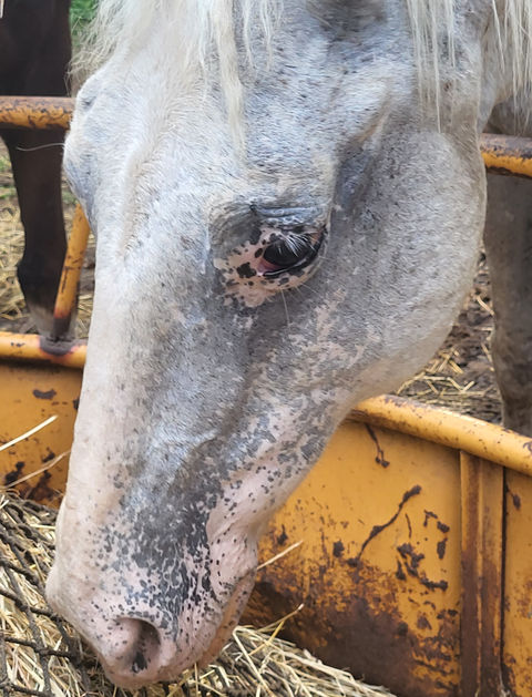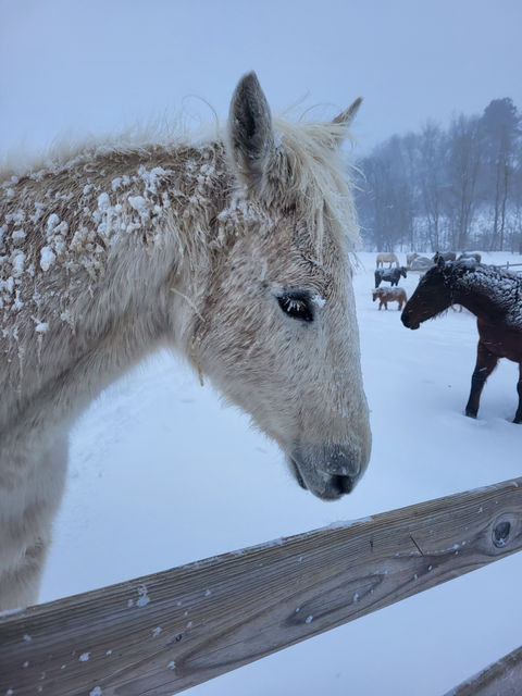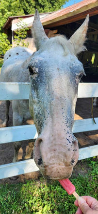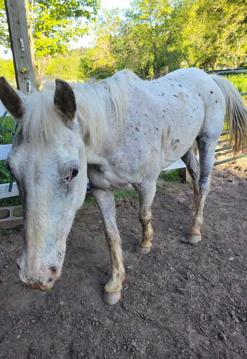 Cookies ‘n Cream, CiCi for short, is a 20ish Appaloosa mare. She was rescued from a kill lot. She needed some work with respecting personal space but with training she has learned boundaries and is friendly and affectionate. She is available for adoption as a pasture mate.
