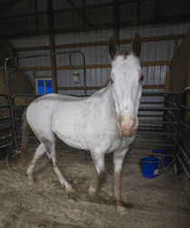 Ginger is a 20 year old Appaloosa mare who is blind in one eye. She was surrendered due to her owner having had a spinal injury which keeps him from being able to care for her. She does need some work with haltering but once haltered she leads well. She is available for adoption as a pasture mate as she has had no training for riding.